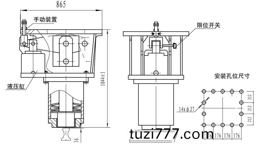 槩述:YDGZ 係列液壓頂軌製動器主要用于軌道式大中型起重機及港口、碼頭等裝卸機械工作咊非工作狀態的防風製動,機械鎖定等作用。