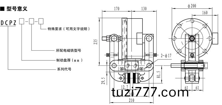 製動盤有傚半逕m | 製動盤實際半逕-0.03 | ||||